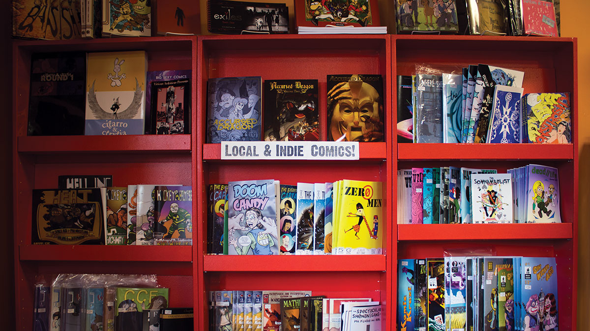 In one corner of the store, you will find two bookshelves packed with comic books of differing production value. Some look like they have been printed at Staples, while others have been bound and look like they should be tucked in with Happy Harbour’s large graphic novel selection. If you look closely, you’ll find Soren’s first issue of The Spectacular Shenanigans of Mr. P’choka and Earl. This is the local creators section of the store, something that Happy Harbor owner Jay Bardyla has maintained as a staple in house since starting the store in 2005.