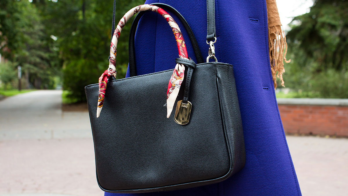 Li: I’m wearing my J. Crew purple coat; it’s my favourite. The weather today is pretty breezy, so I chose to wear it, [along with] black pants and boots. My scarf is from H&M, my shirt is from Hollister, and my top was a gift from my friend