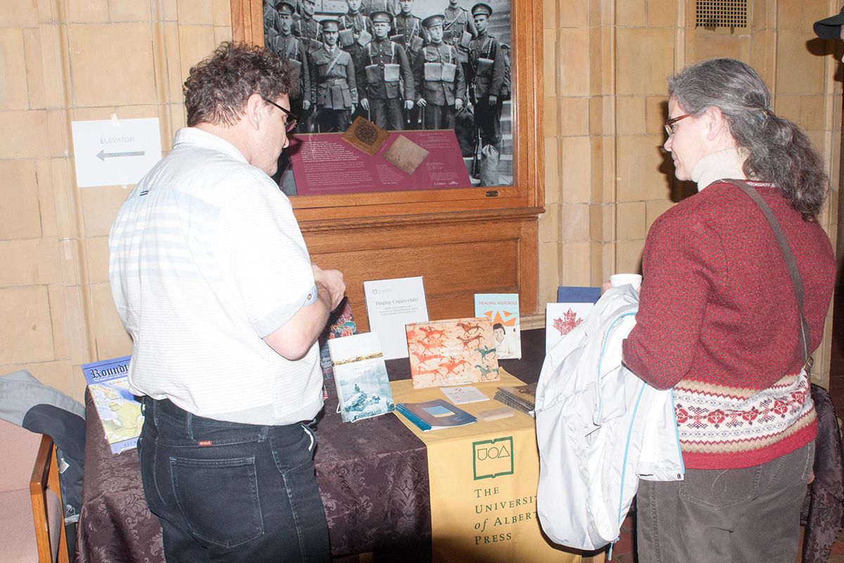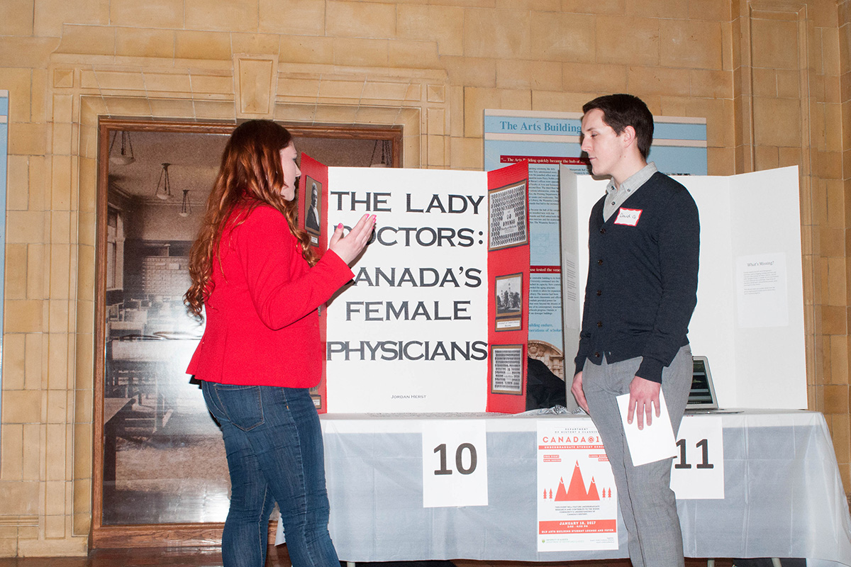 The undergraduate research displays explored Canadian events from the 19th century to the more recent past. Eleven student research displays filled the hall, covering topics such as Canada’s first female physicians, the history of churches in Edmonton, and atomic bomb education in Alberta.