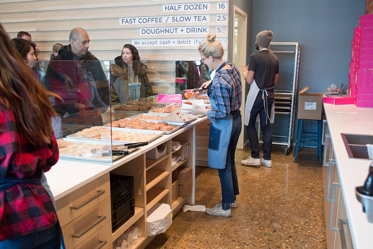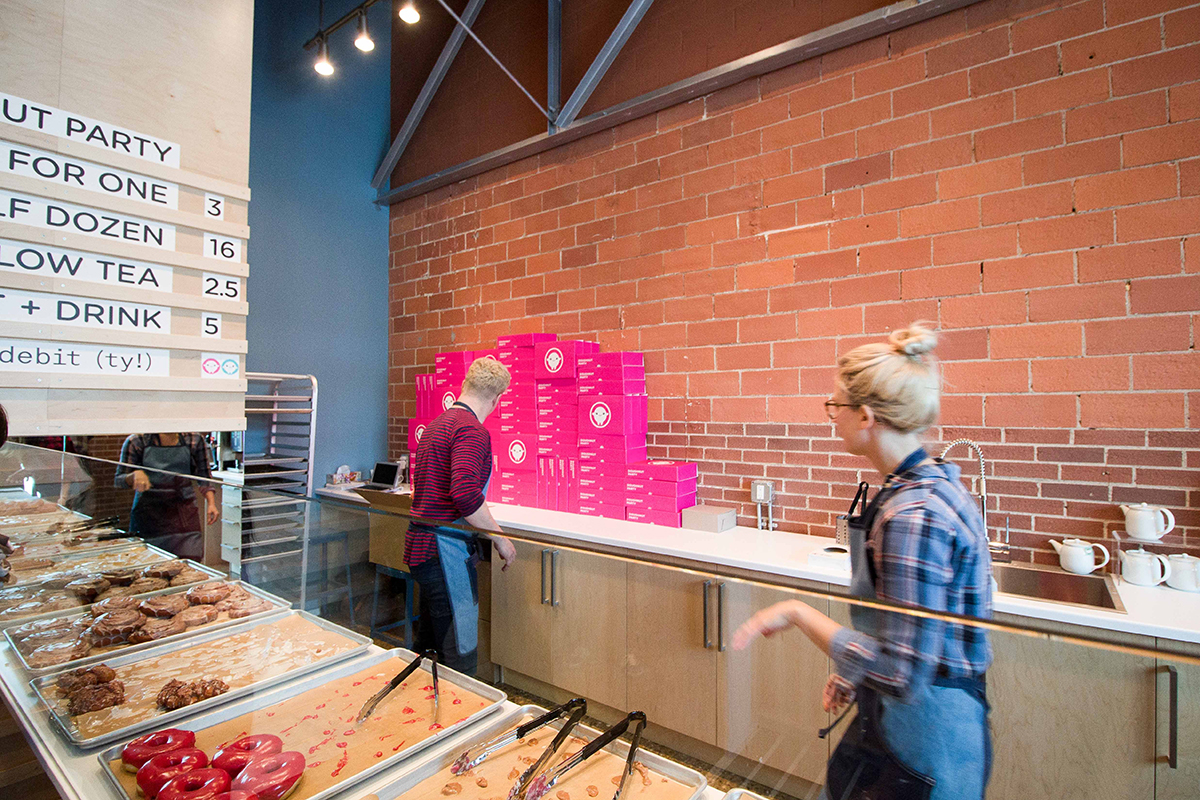 “It all started in Japan about two years ago,” says Underwood. “We were touring bakeries and dessert shops looking for inspiration and we ended up falling for the colours and cartoonish designs we saw. We wanted to make classic artisanal doughnuts with that kind of Asian flair, but it took six months for us to even come up with the name. We wanted to make it perfect.”