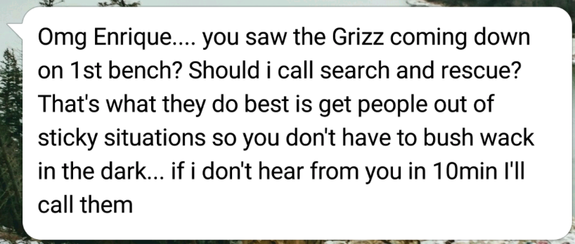 Turns out I had stumbled into the Fernie Search and Rescue Station and these nice people were getting ready to go out and look for my corpse. My landlady had gotten my text and rightfully freaked the fuck out.
