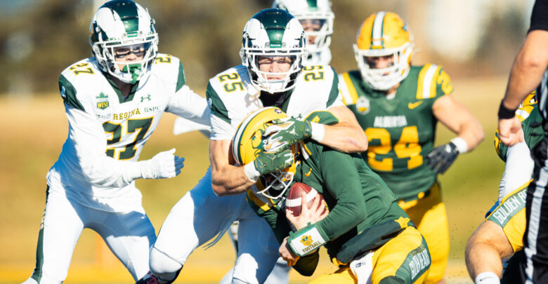 Alberta’s defence set the tone early, stuffing Regina’s top-ranked offence and holding the Rams scoreless through most of the first quarter. The defensive line tipped passes, closed gaps, and smothered the run, showing the kind of physical edge that has been developing all season.