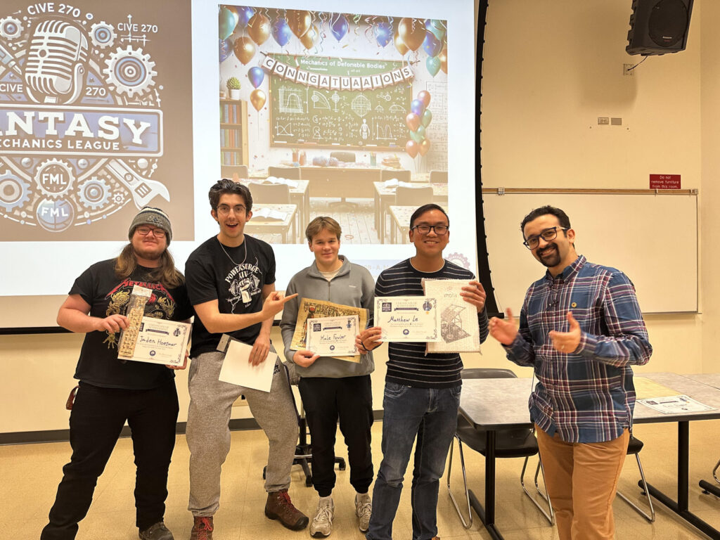 To make his lectures more engaging, he developed the “Fantasy Mechanics League” for courses such as ENGG 130 and CIV E 270. This concept was inspired by Fantasy Premier League Football, which he had grown up playing.