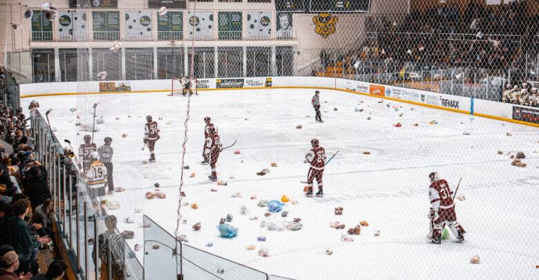 Davis Maloney Clare Drake Arena had a unique buzz this weekend. Fans packed the rink on both Friday and Saturday, flooding the ice with Teddy Bears. The fuzzy bears occupied an entire box truck in transport to Norwood Child and Family Resource Centre, where they will be donated. These kinds of events make these games feel bigger than sport.