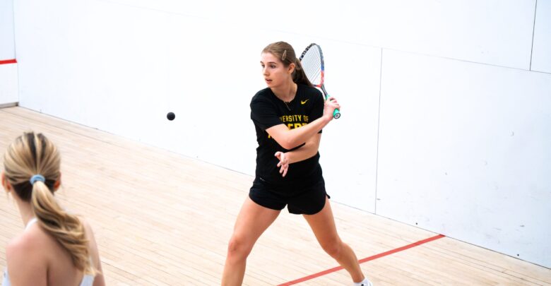 She goes to class, studies, and worries about exams. Then, a few times a week, she steps on a squash court and plays at an elite level.