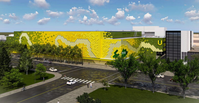 The new design moves away from pure butter-yellow and leans into green and gold panels instead. It is still very much a campus statement piece, just slightly more modern and less “margarine.” The colours are meant to reflect university branding and the river valley, especially in the fall. The result looks clean, and surprisingly sharp.