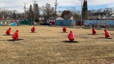 Dustin Delfs Arts on the Ave’s squatting monks remind us about empathy and global unity