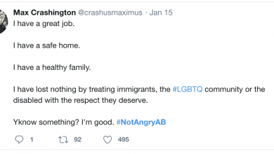 Max Crashington on Twitter #NotAngryAB proves that scare tactics have no place in Albertan politics