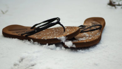Helen Zhang Burlap Sack: Wearing sandals in the snow