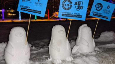 An art display created by Students’ Union representatives in protest of provincial post-secondary budget cuts to institutions was demolished Friday…