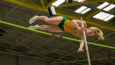 Wes Eze, Rachel Grenke, April Kippers, and Tise Okuboyejo will swap their green and gold for red and white this…